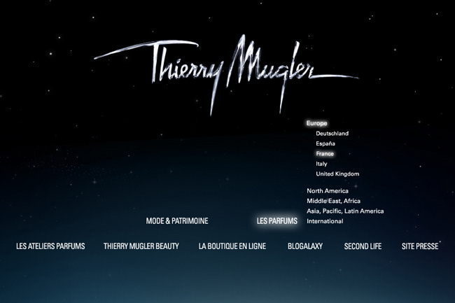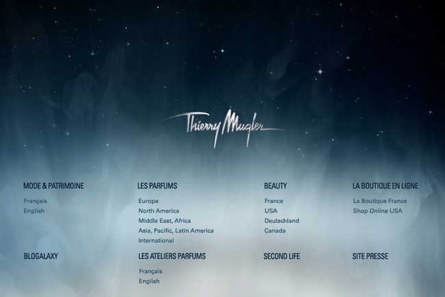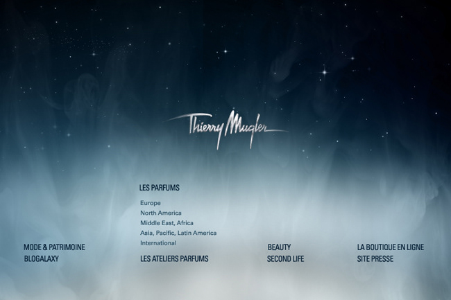 Web design of the Thierry Mugler index.